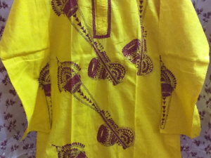 Kantha stitch Punjabi pure cotton yellow