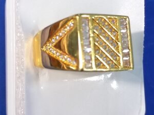 Finger ring gold plated with AD square design for gents