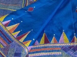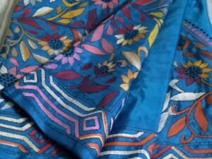 Blended Kantha Stitch With Bangalore Silk Saree (Blue)