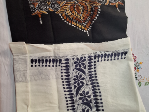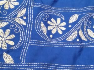 Blended Kantha Saree (Blue and White)