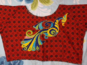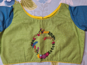 Boat neck hand embroidery Green and Blue