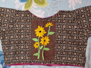 Butter Silk Blouse with Suili Phool Design Blue