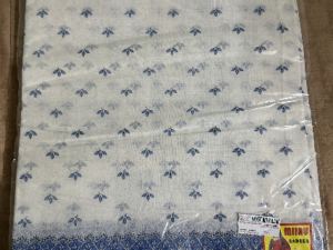 Blue border printed cotton Saree