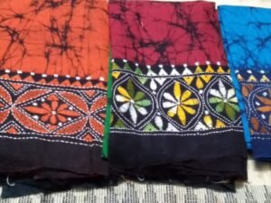 Bangladeshi Check tant Applique Fish motif with Frill saree