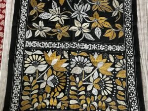 Blended Art Silk All over Kantha Stitch Black Saree with multicolor thread