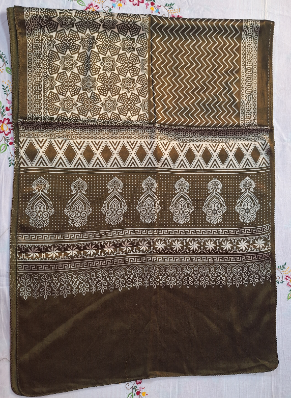 Ajrak Modal silk stole (Red & Green Mehndi) আজরাক মোডাল সিল্ক স্টোল (লাল, গ্রীন মেহন্দি )