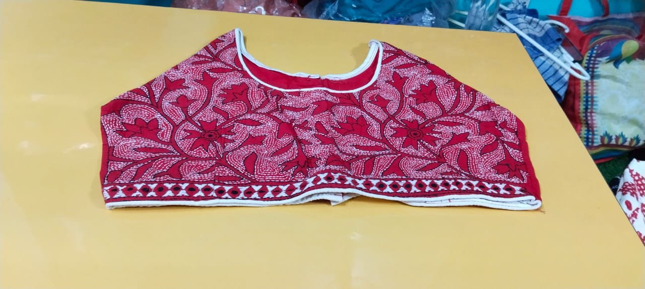 All over Kantha Stitch ready Blouse Red