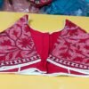 অল ওভার কাঁথা স্টিচ লাল ব্লাউসের সাথে