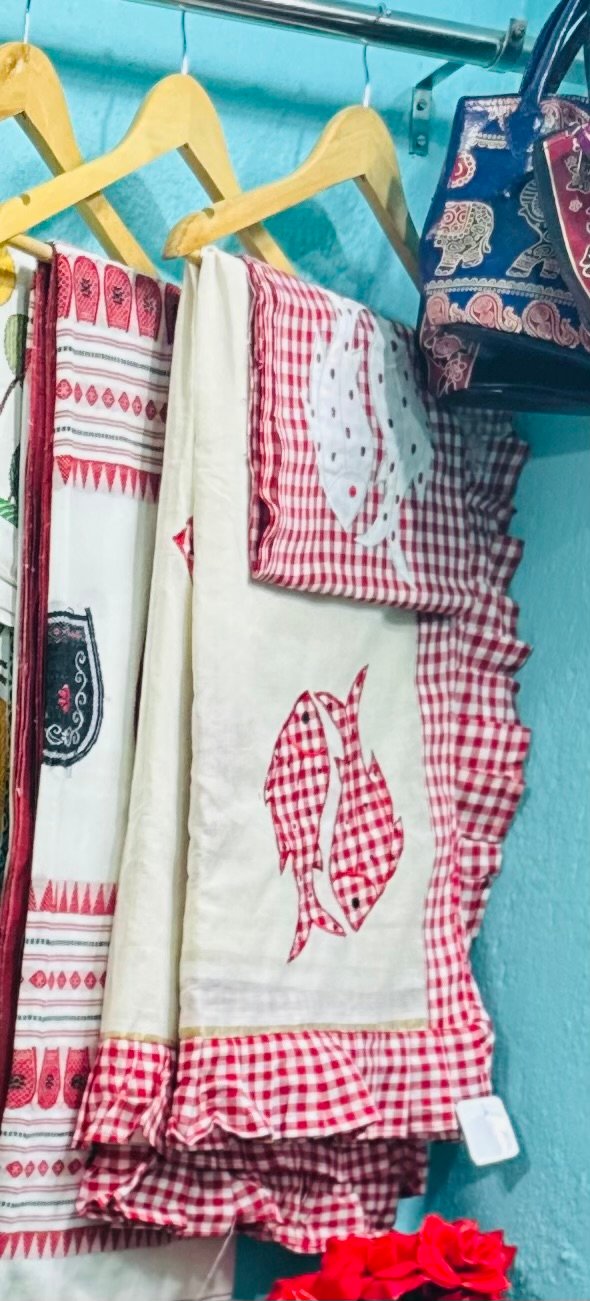 Bangladeshi Check tant AppliqueFish motif with Frill saree