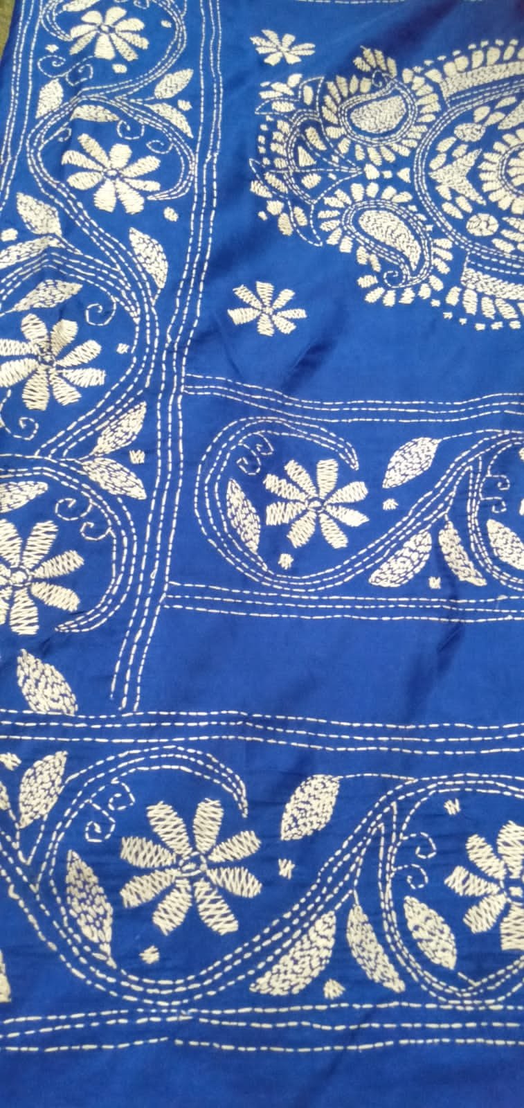 কাঁথা শাড়ী (নীল ও সাদা) Blended Kantha Saree (Blue and White)