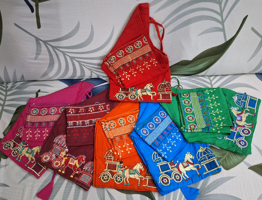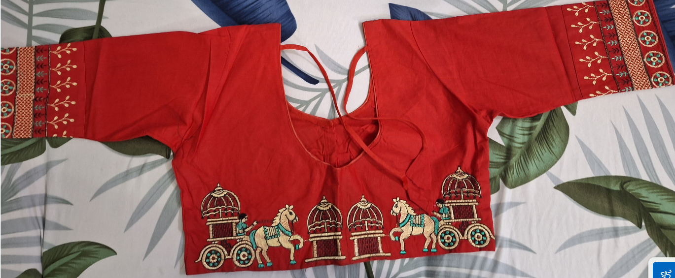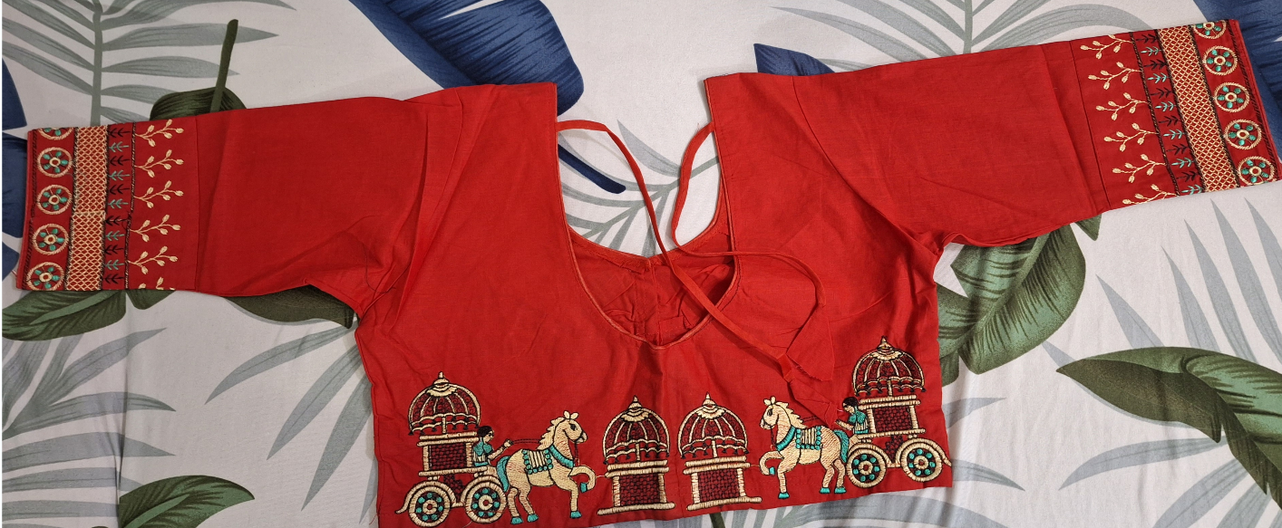 Blouse 3 / 4 th Glass Sleeves Round Neck embroidery work ব্লাউস ৩/৪ গ্লাস স্লীভস গোল গলার সাথে এমব্রয়ডারি কাজ