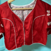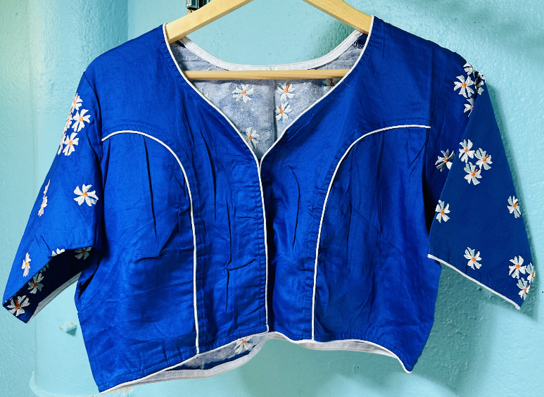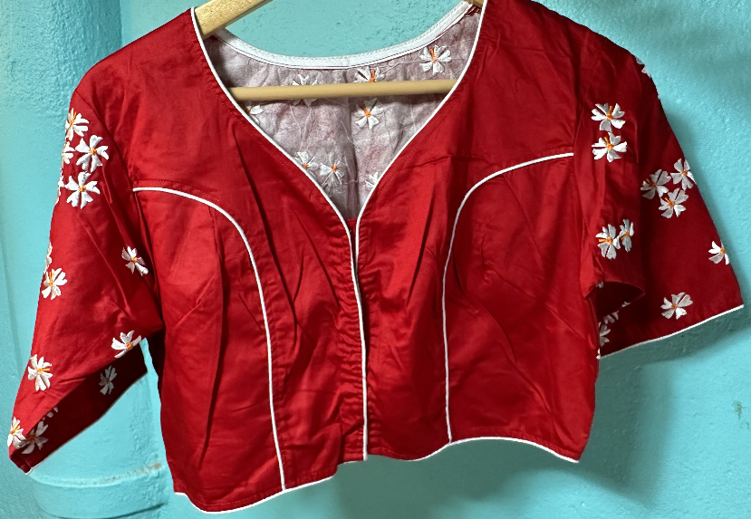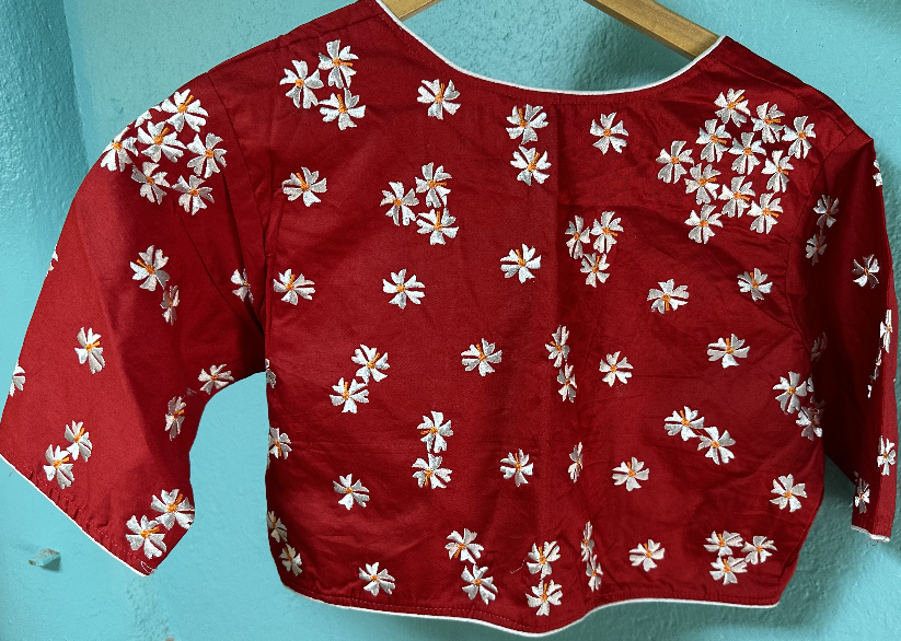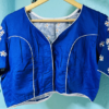 Butter Silk Blouse with Suili Phool Design Blue and Red