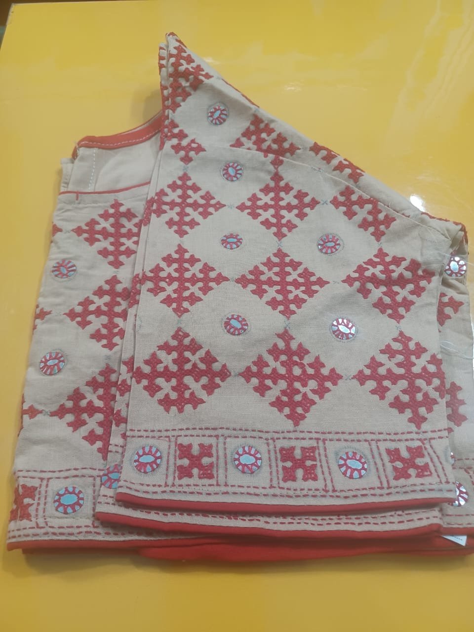 লাল রঙের কাঁথা স্টিচ রেডীমেড অল ওভার ব্লাউস