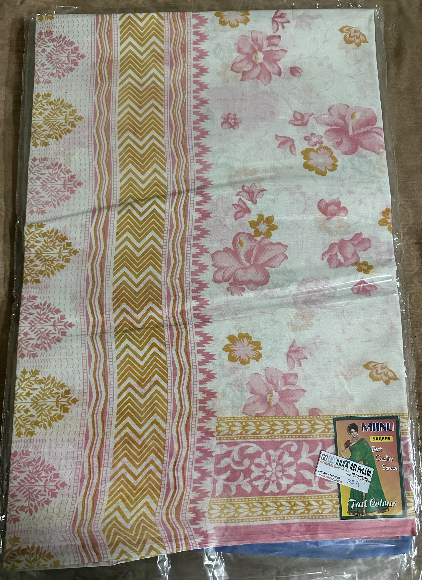 পিঙ্ক সাদা প্রিন্ট সুতির ছাপা শাড়ী