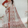White red printed cotton Saree সাদা লাল প্রিন্ট সুতির ছাপা শাড়ী